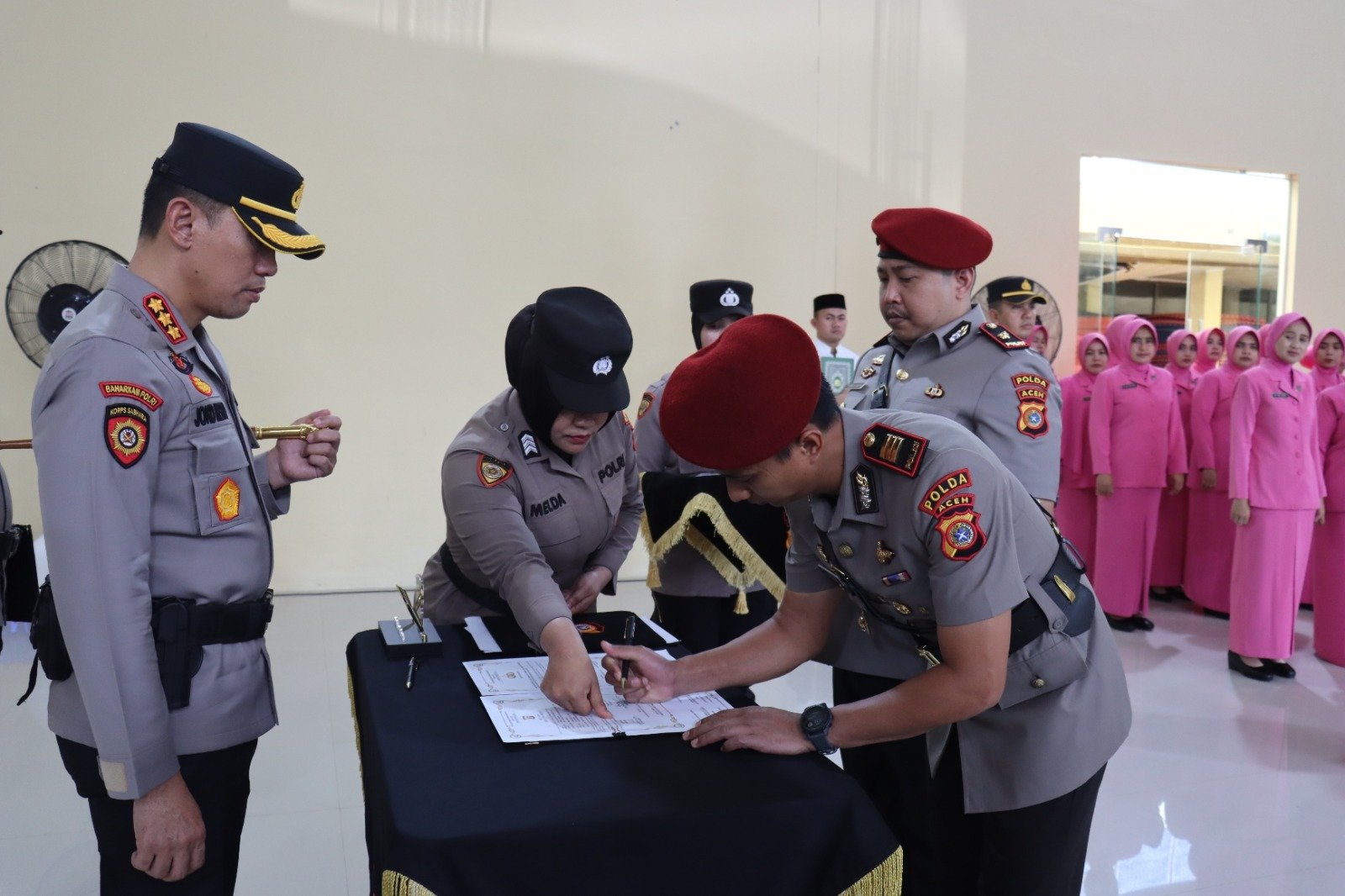 Pelantikan ini dipimpin langsung oleh Kapolresta Banda Aceh Kombes Pol Joko Heri Purwono dan turut dihadiri oleh Wakapolresta, para pejabat utama, personel Polresta, serta Pengurus Bhayangkari Cabang Kota Banda Aceh.