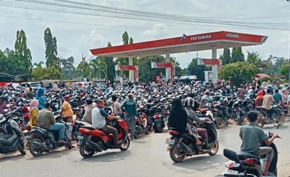 “Mereka mengantri berkali-kali bahkan beberapa diantaranya dengan memodifikasi tangki sepeda motornya dan berdesak-desakan dengan pengendara roda dua lainnya,” katanya.