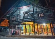 Bangunan kayu tersebut menampilkan ukiran tradisional, pilihan warna, dan bentuk arsitektur khas Aceh yang mencerminkan nilai adat dan sejarah.