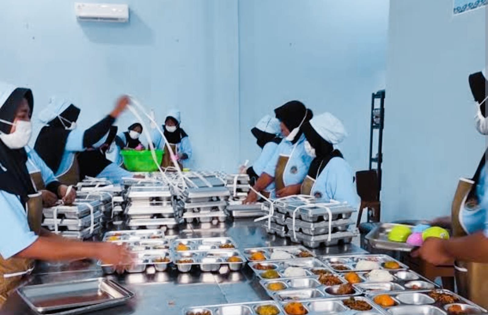 Pegawai SPPG sedang menyiapkan makanan bergizi. Foto: Dok. BGN