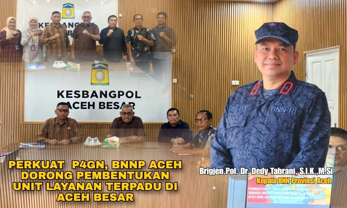 MITRABERITA.NET | Dalam rangka memperkuat upaya Pencegahan dan Pemberantasan Penyalahgunaan dan Peredaran Gelap Narkotika (P4GN), Badan Narkotika Nasional Provinsi (BNNP) Aceh mendorong pembentukan Unit Layanan Terpadu (ULT) di Kabupaten Aceh Besar sebagai pusat layanan terintegrasi bagi masyarakat.