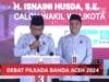 MitraBerita | Pasangan calon Walikota-Wakil Walikota Banda Aceh nomor urut 2 Cek Zainal-Mulia Rahman, menyampaikan visi dan misi mereka dalam debat perdana yang digelar di Amell Convention Hall Blang Oi Banda Aceh, Rabu malam, 30 Oktober 2024.
