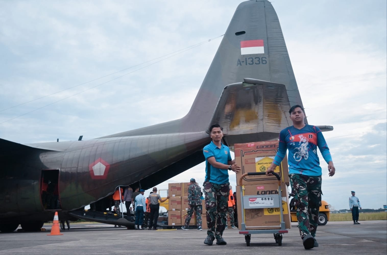 Sebanyak 150 unit genset tahap awal dikirim menggunakan pesawat C-130 Hercules A-1336 milik Skadron Udara 33 Lanud Hasanuddin Makassar.