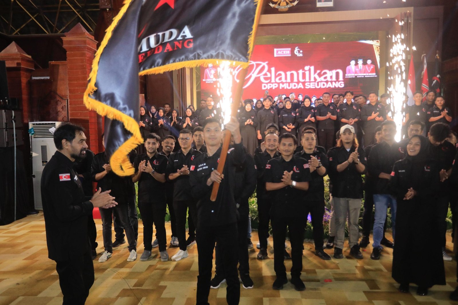 Pelantikan tersebut ditandai dengan penyerahan bendera pataka organisasi oleh Gubernur kepada Ketua Umum DPP Muda Seudang terpilih, Agam Nur Muhajir, sebagai simbol amanah dan tanggung jawab kepemimpinan.
