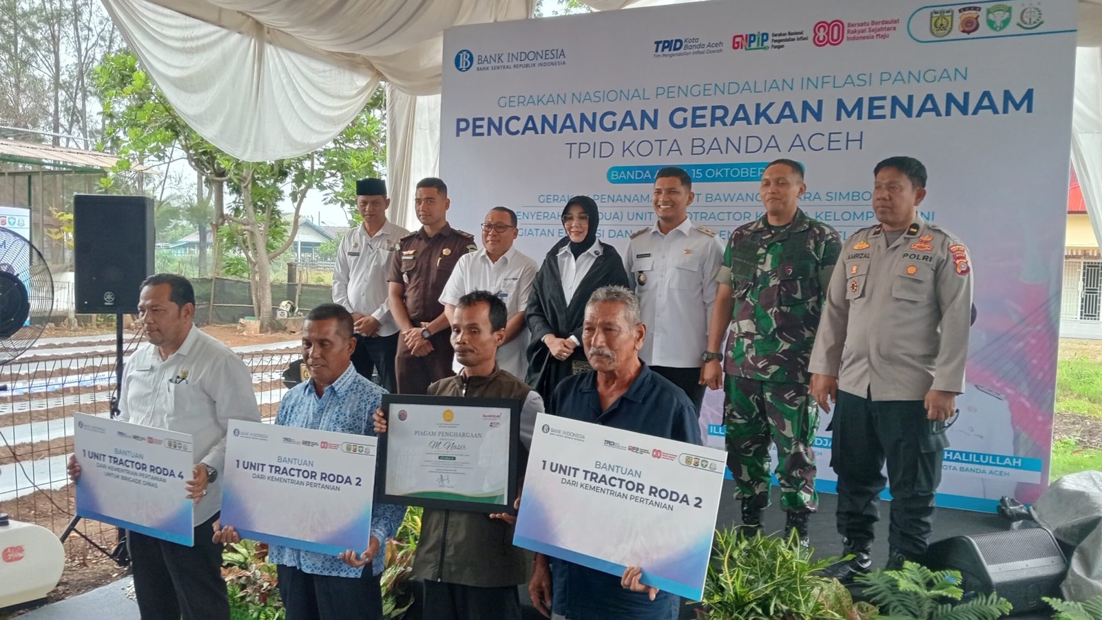 Hari ini, pemerintah kota dan Bank Indonesia juga menyerahkan bibit bawang secara simbolis dan dua unit handtractor bantuan kementerian pertanian kepada kelompok tani. “Ini sebagai wujud nyata dukungan terhadap peningkatan produksi pangan dan pemberdayaan petani.”