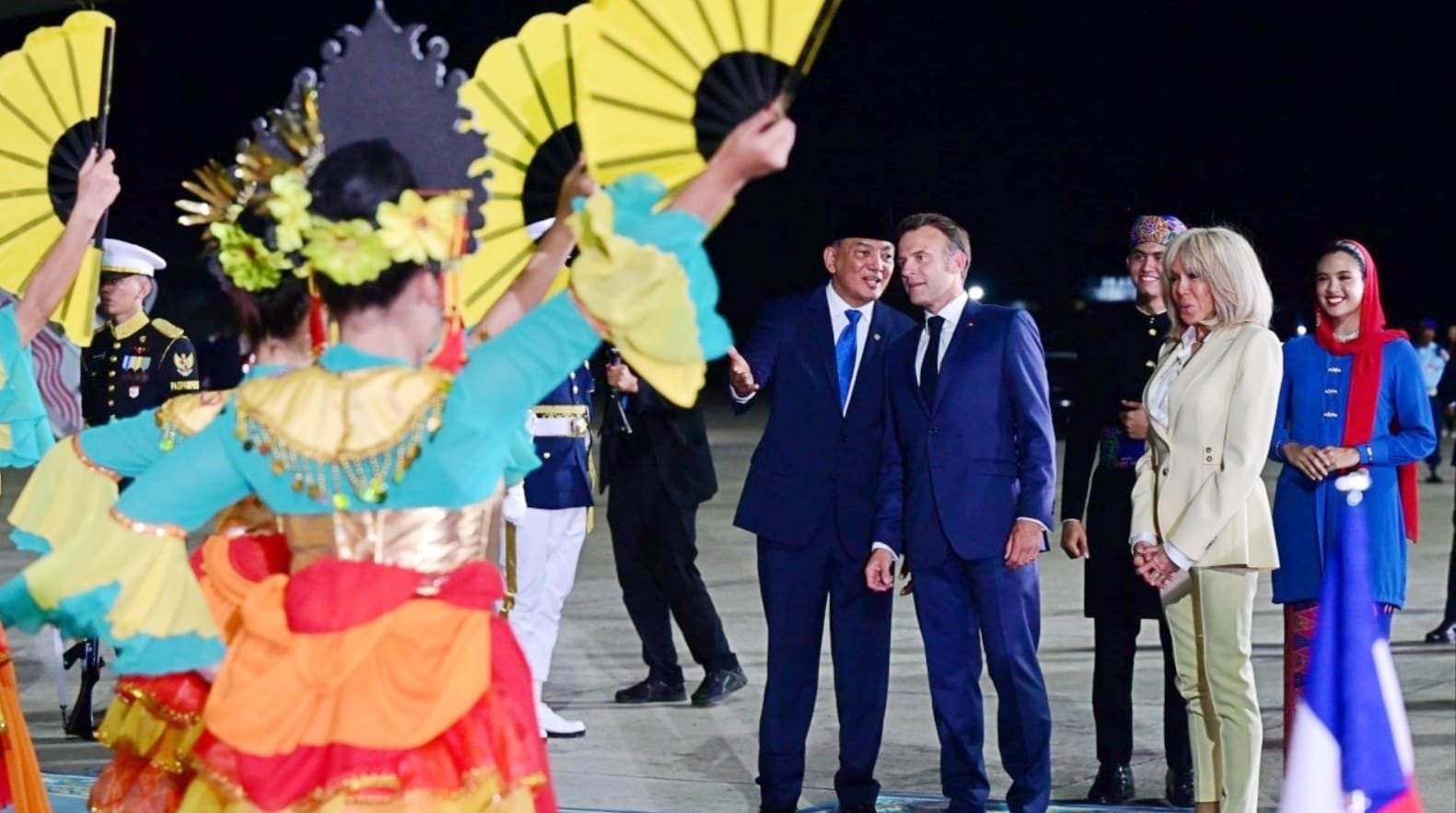 Presiden Macron tiba di Jakarta pada Selasa malam sekitar pukul 22.00 WIB, didampingi Ibu Negara Brigitte Macron dan rombongan delegasi resmi.