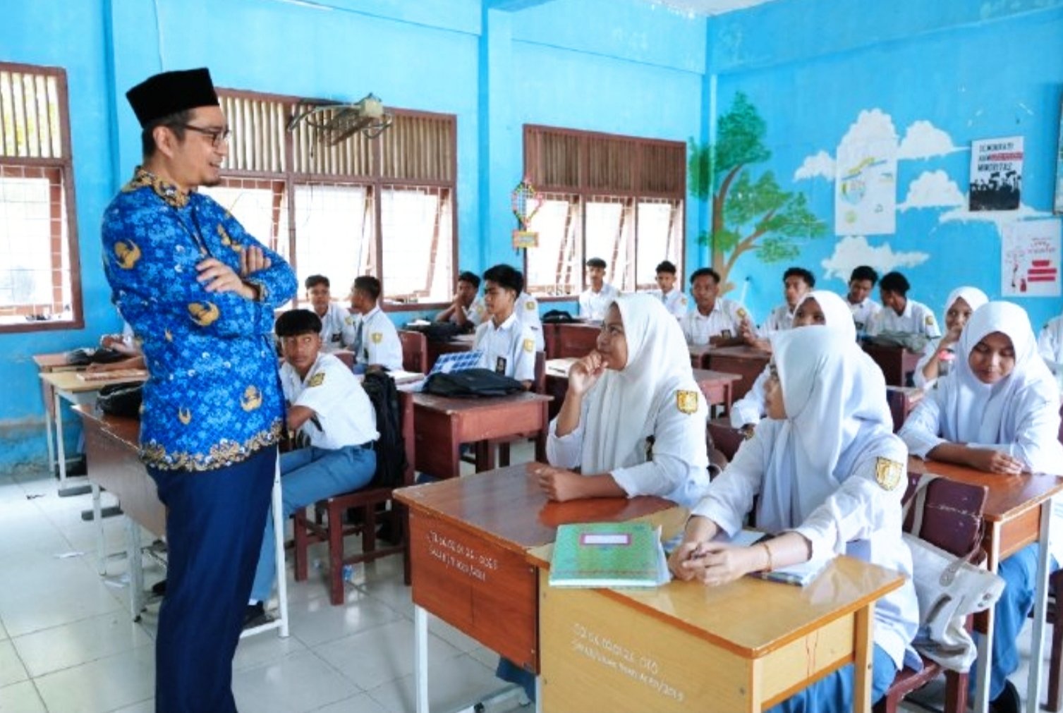 Selain meninjau pelaksanaan ujian, Marthunis juga menyempatkan diri berdiskusi langsung dengan siswa di dalam kelas, menguji mereka melalui pendekatan pembelajaran mendalam, serta memberikan motivasi untuk terus meningkatkan semangat belajar.