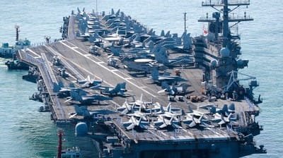 Penampakan Kapal induk AS USS Ronald Reagan. (Reuters/Yonhap News Agency)