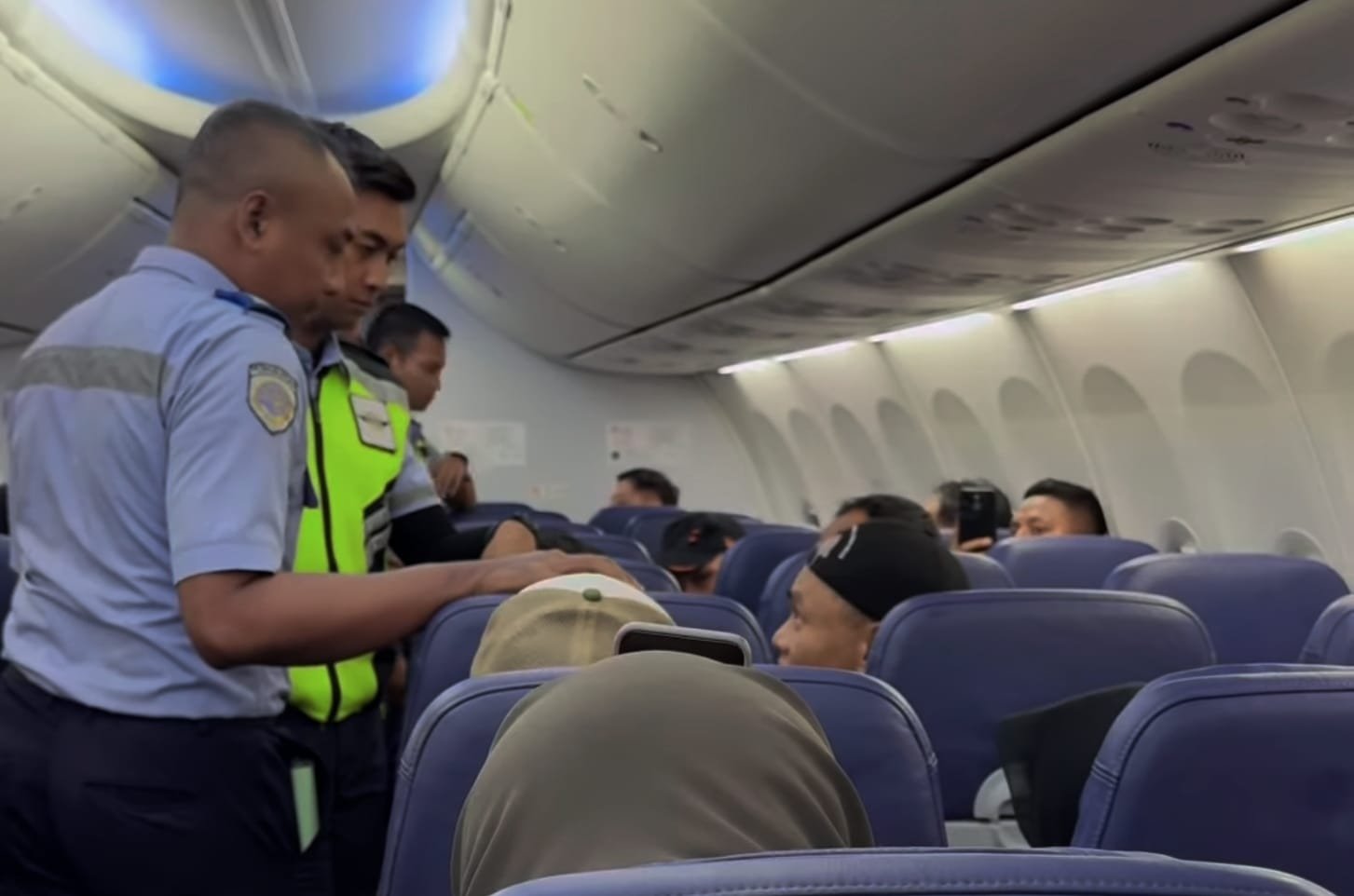 Para penumpang lainnya merasa tidak nyaman, bahkan ketakutan dengan kemungkinan ancaman yang ada. Seluruh penumpang, berjumlah 184 orang, akhirnya harus diturunkan dari pesawat untuk pemeriksaan lebih lanjut.