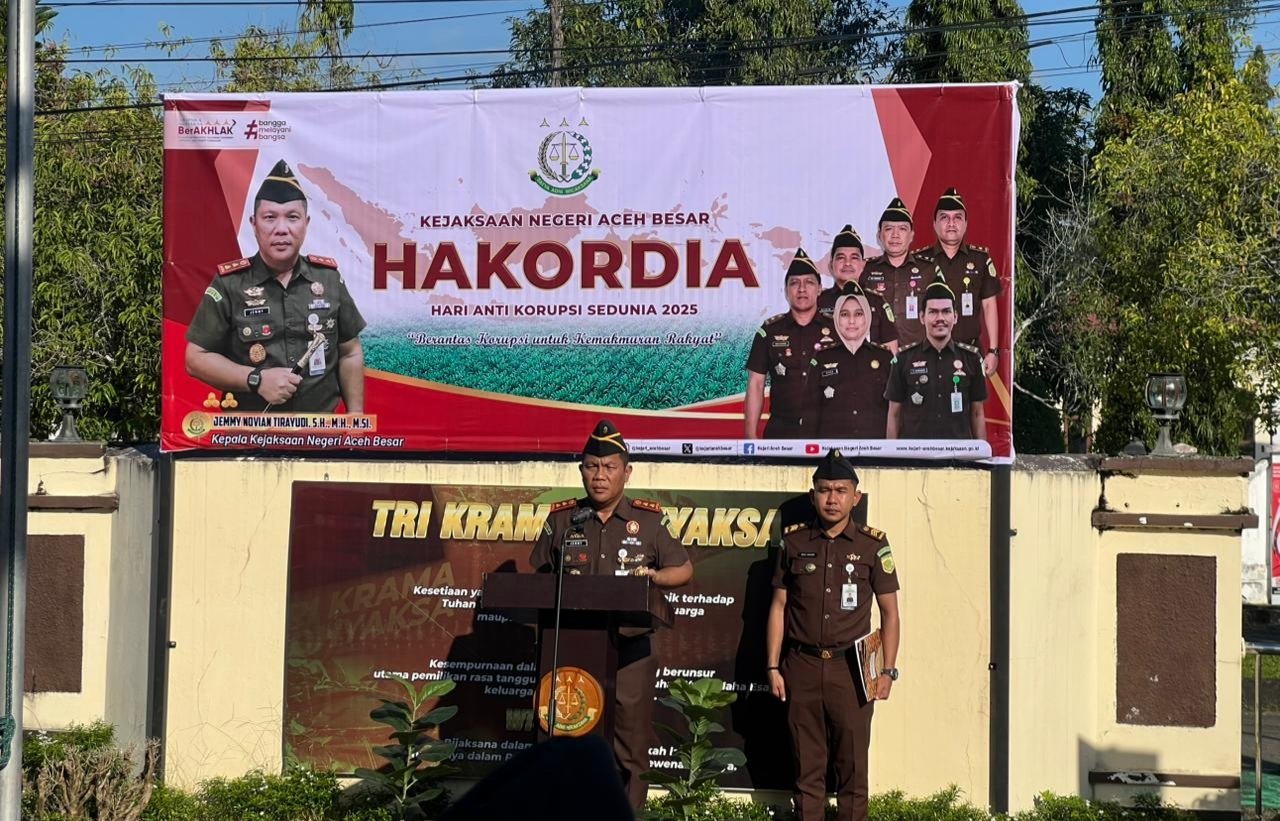 MITRABERITA.NET | Kejaksaan Negeri Aceh Besar menggelar upacara peringatan Hari Anti Korupsi Sedunia (Hakordia) 2025, pada Selasa 9 Desember 2025, di halaman Kantor Kejari Aceh Besar.