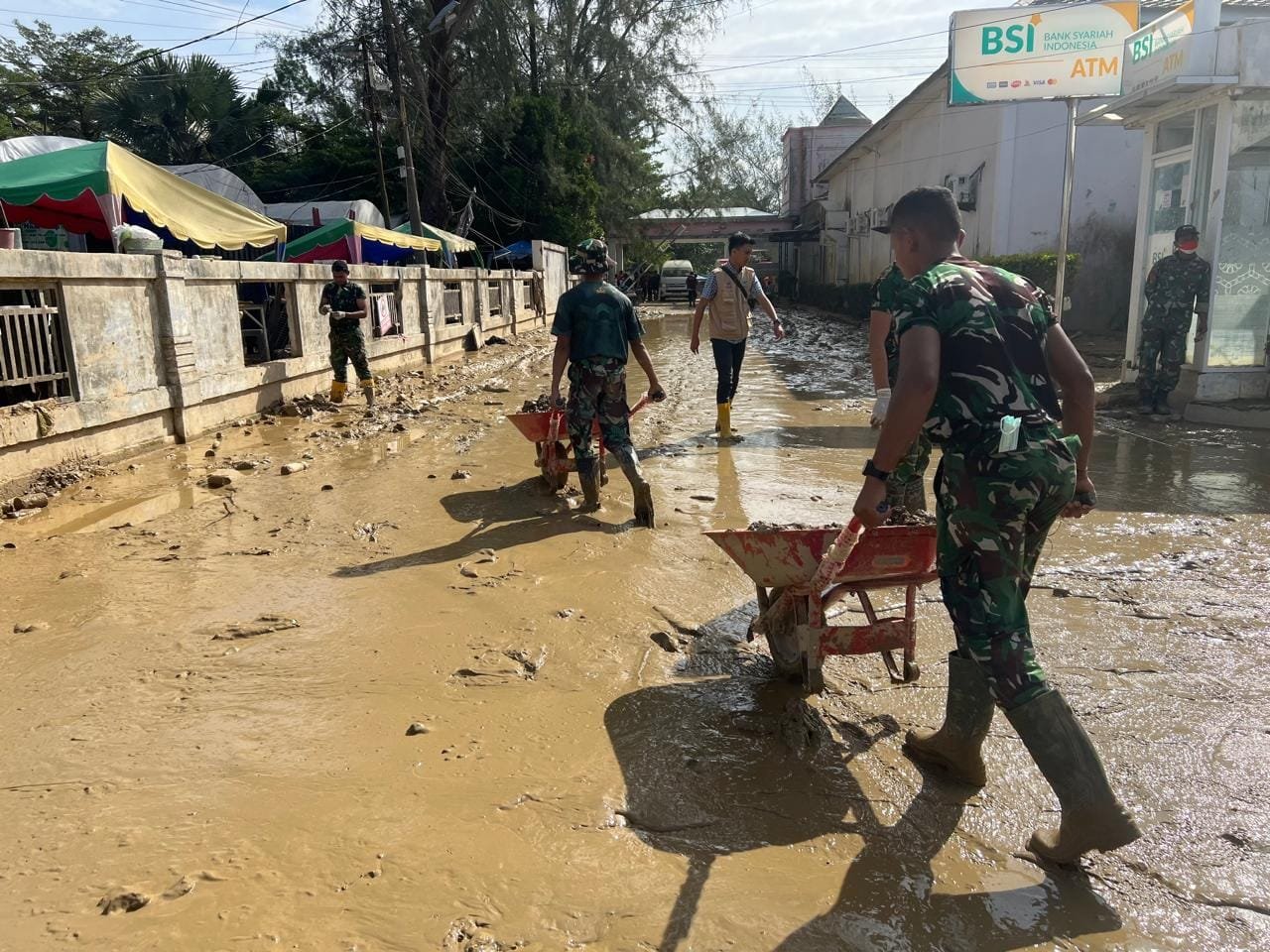 Kegiatan gotong royong tersebut mencerminkan kuatnya kebersamaan antara TNI dan warga dalam menghadapi dampak bencana.