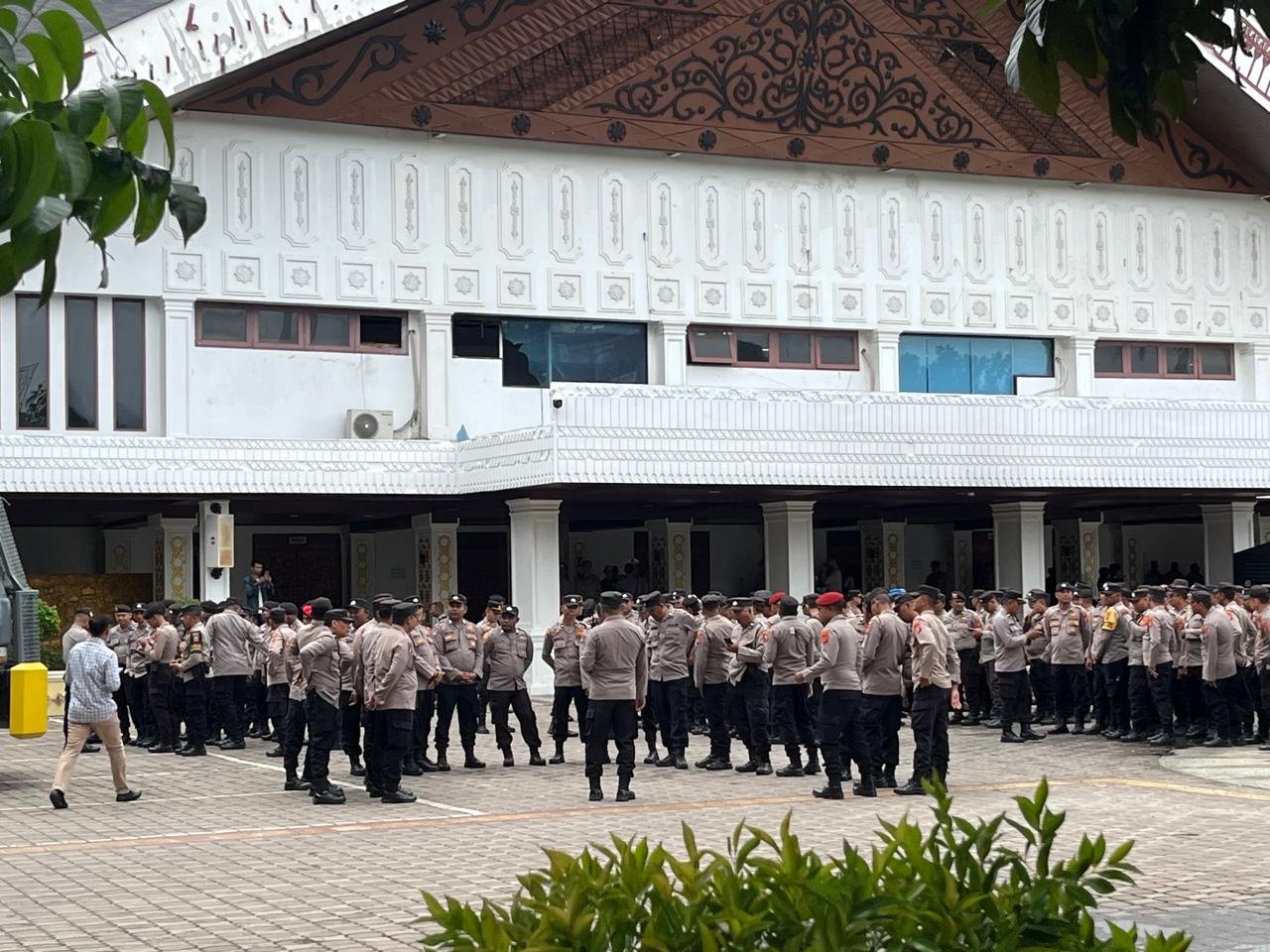 Ratusan aparat kepolisian dari berbagai kesatuan sudah menggelar apel kesiapan di halaman kantor DPRA.