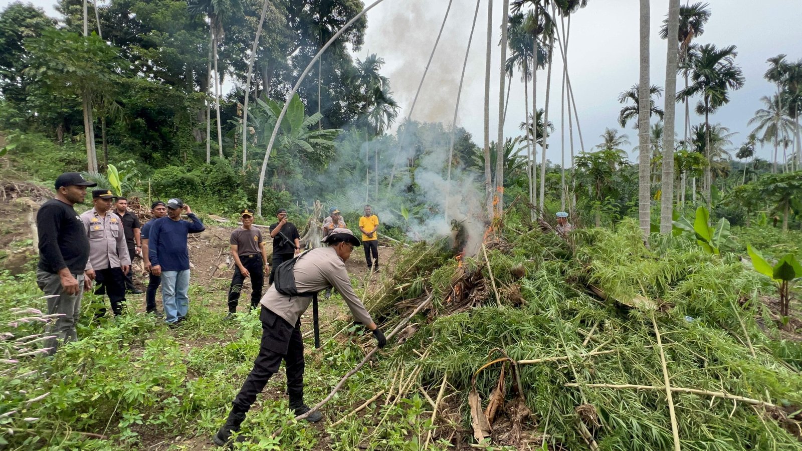 “Sebanyak 4.195 batang ganja dimusnahkan di tempat, sementara lima batang kami bawa sebagai barang bukti untuk kepentingan penyidikan dan uji laboratorium,” ungkap AKBP Tuschad.