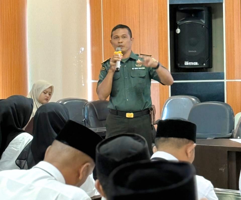 Kegiatan yang berlangsung di Aula Lantai 3 Satpol PP dan WH Aceh pada Kamis (13/11/2025) itu menghadirkan Kapten Inf Riffal, Katim Proddok Penerangan Kodam Iskandar Muda, sebagai pemateri utama.