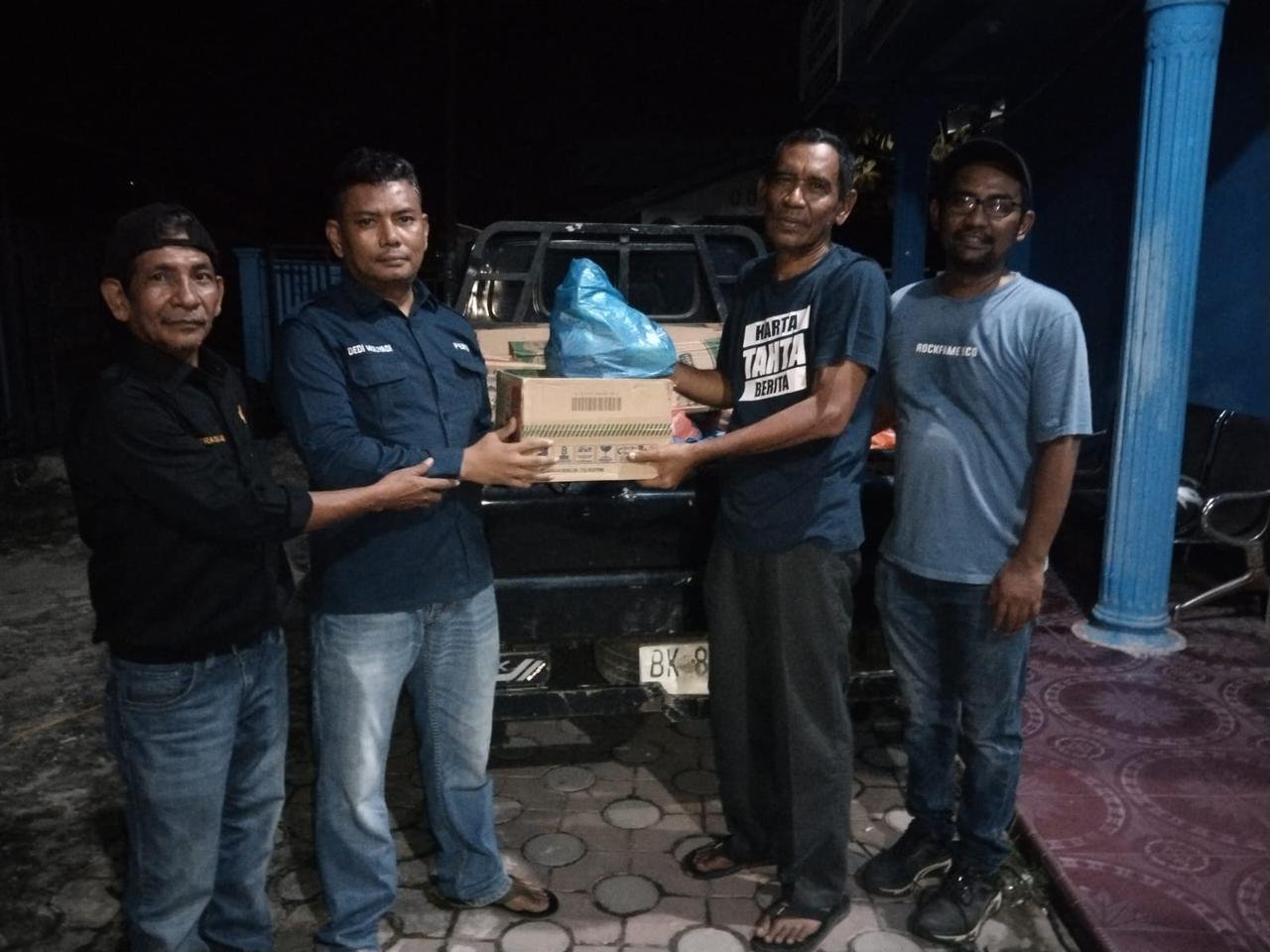 Bantuan untuk wartawan anggota PWI Aceh Tamiang diserahkan oleh Sekretaris PWI Aceh, Muhammad Zairin kepada Sekretaris PWI Aceh Tamiang, Abdul Rozzaq Mubarraq.