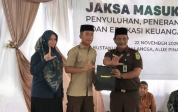 **Teks Foto:** Perwakilan Bank Aceh Syariah memberikan pembekalan literasi keuangan syariah kepada ratusan santri Dayah Bustanul Ulum Alue Pinang dalam program “Jaksa Masuk Dayah” di Langsa Timur, Sabtu (22/11/2025). Foto: Dok. MB