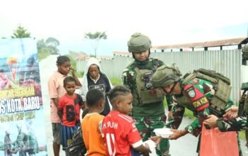 MITRABERITA.NET | Pos Kalisemen Satgas Yonif 112/Dharma Jaya kembali menunjukkan kepeduliannya terhadap kesehatan masyarakat pedalaman Papua dengan melayani pengobatan gratis dan bagikan bahan makanan di Kampung Wondengobak Distrik Mulia Kab. Puncak Jaya Prov. Papua Tengah, Ahad (23/11/2025).