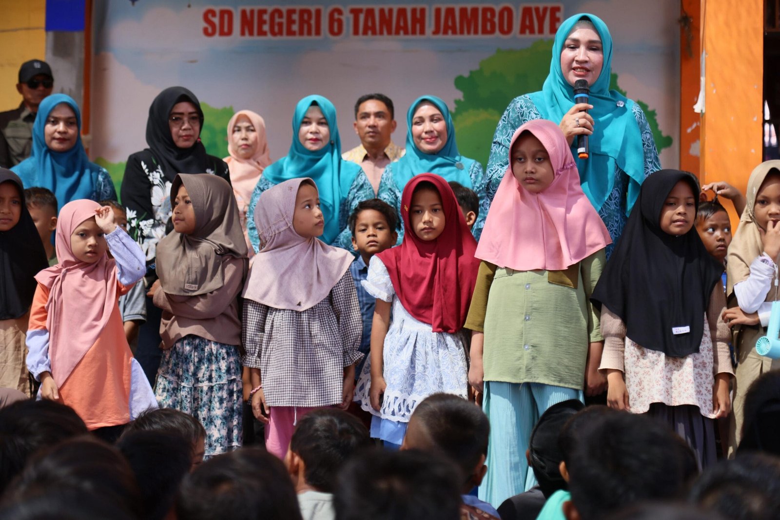 “Iya bunda,” jawab para siswa serentak, disambut tepuk tangan dan suasana haru yang mencerminkan kebahagiaan mereka.