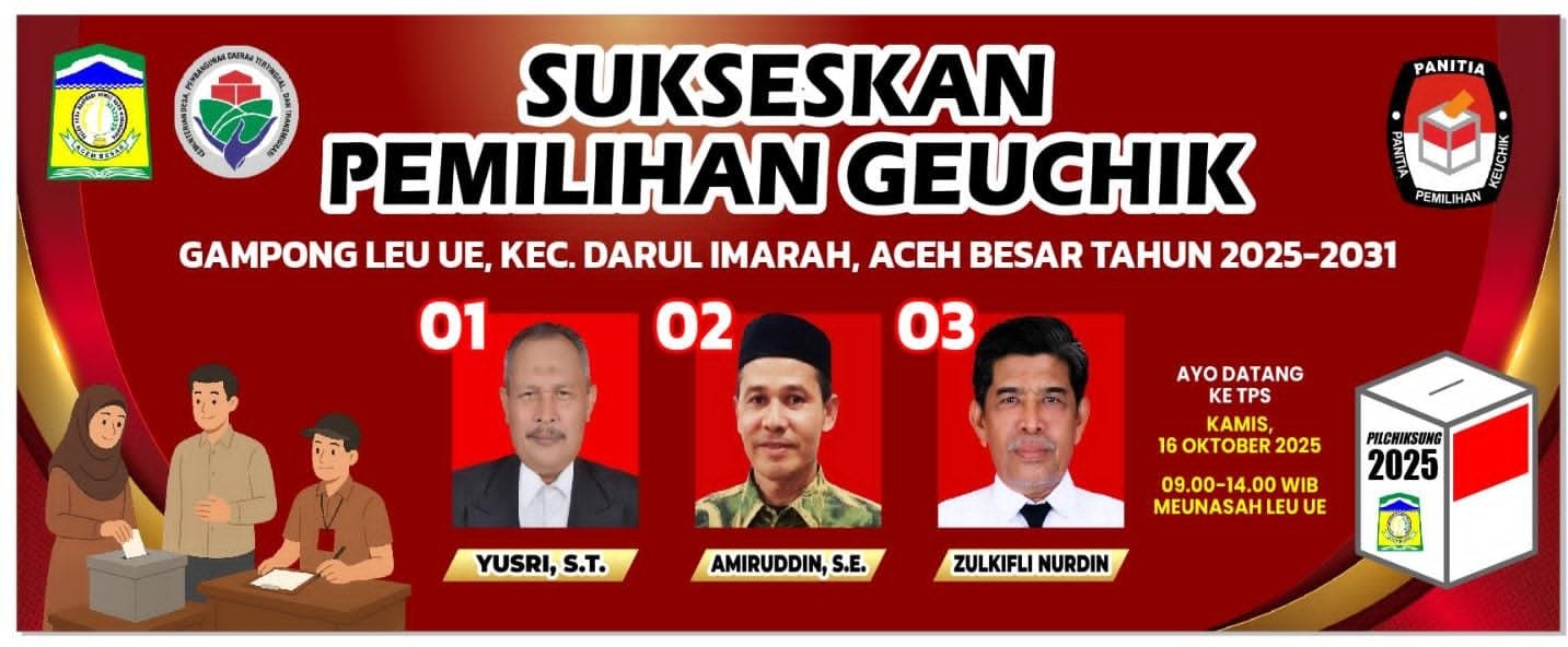 Pilchiksung Gampong Leu Ue tahun 2025 diharapkan berlangsung aman, jujur, dan demokratis, mencerminkan kedewasaan politik masyarakat Aceh Besar dalam memilih pemimpin yang mampu membawa kemajuan dan kesejahteraan bagi gampong.
