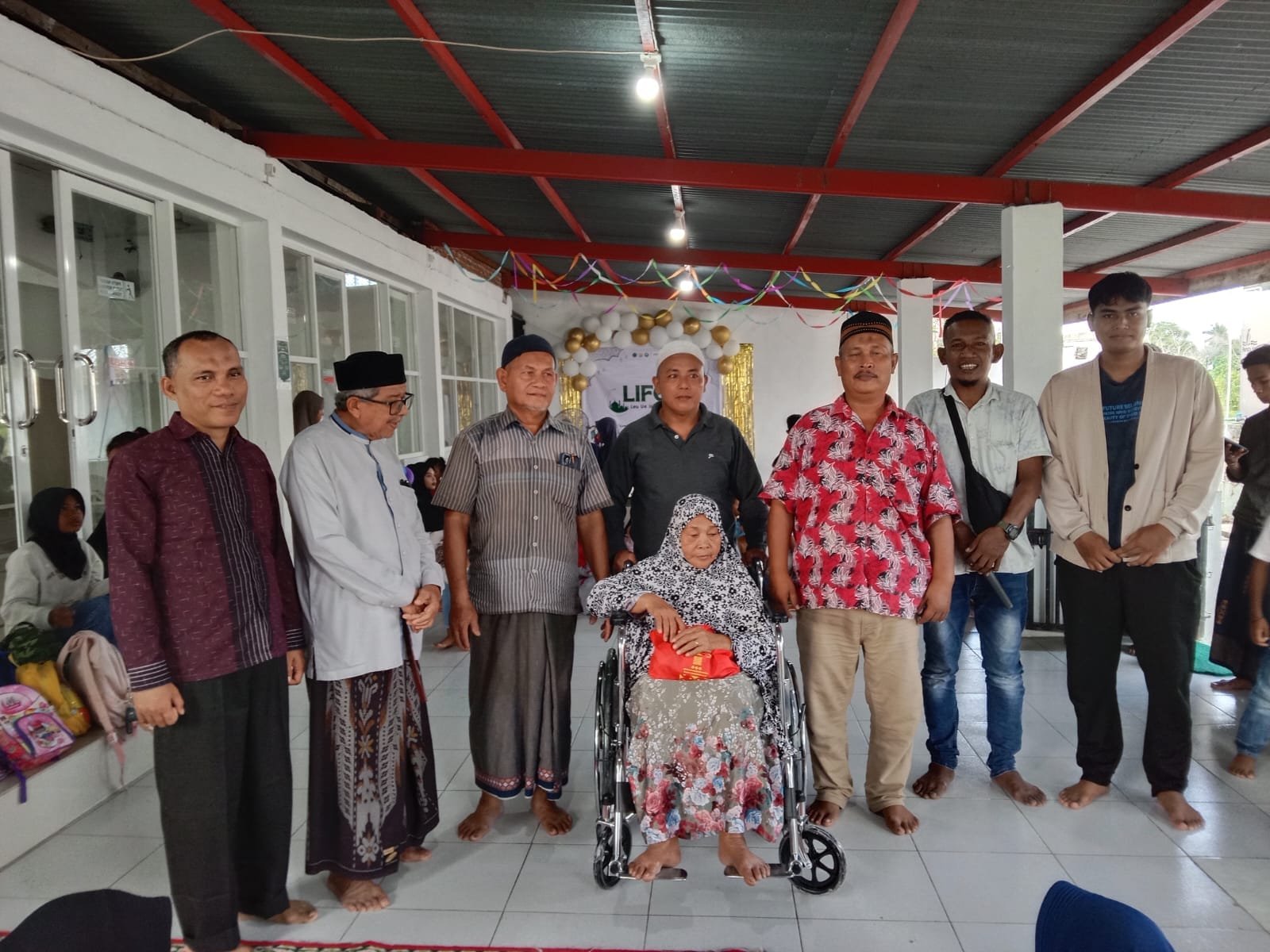 Adapun penerima bantuan kursi roda adalah Aminah, sementara bantuan tongkat diserahkan kepada Nilawati, Hasanah, Aisyah, Nasriah, Umi Kalsum, dan Nurhamiah.